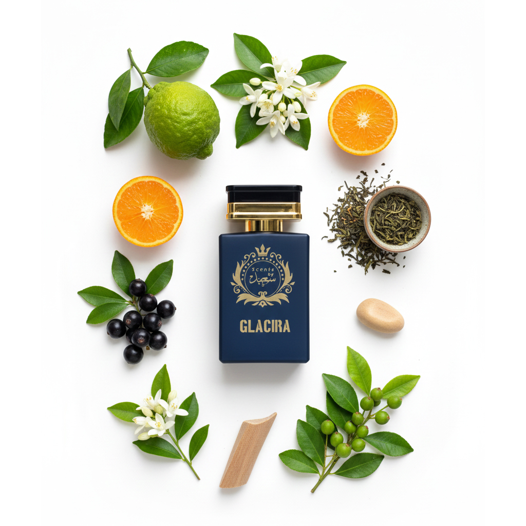 Perfect for everyday wear, Glacira embodies confidence, calm, and clarity. Whether for work, travel, or casual outings, its cool and balanced composition makes it a go-to fragrance for those who value understated luxury and effortless charm.