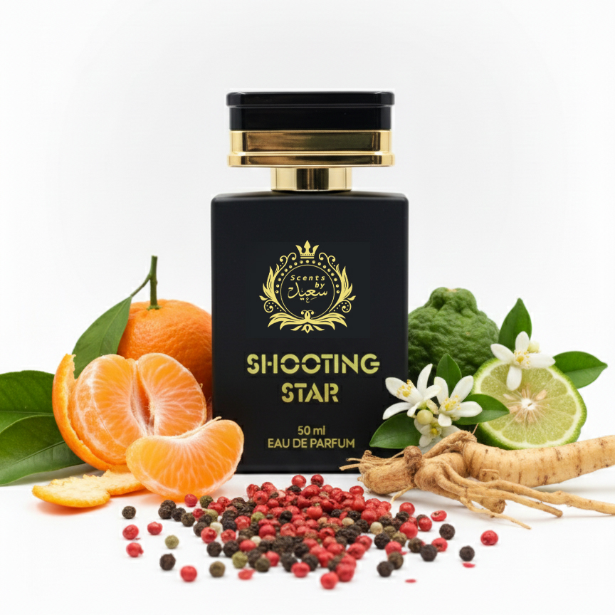 Shooting Star by Scents by Saeed is a dynamic masculine fragrance inspired by LV Météore, crafted for men who love freshness with a strong, energetic presence. The opening delivers a crisp and vibrant mix of mandarin, bergamot, and Sicilian orange, offering a bright citrus burst that immediately lifts the senses.